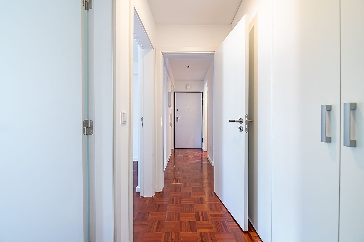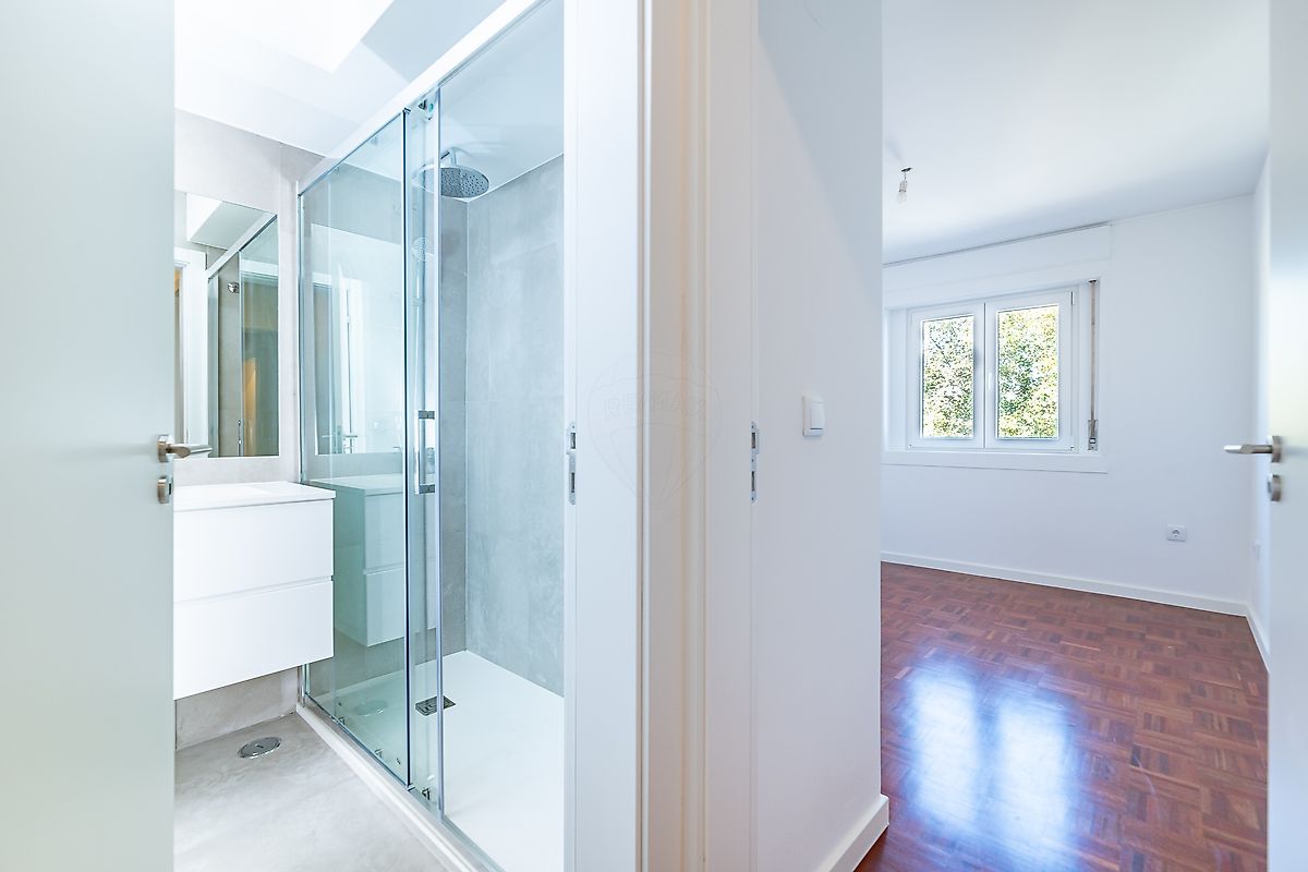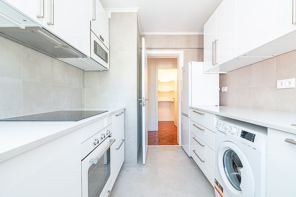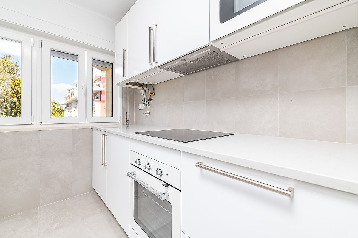 Two-bedroom flat, completely renovated, located on the fourth floor of a building with one lift, offering 81.34 m² of gross private area. Situated in the centre of Telheiras, just two buildings away from the Metro Station (Green Line).
