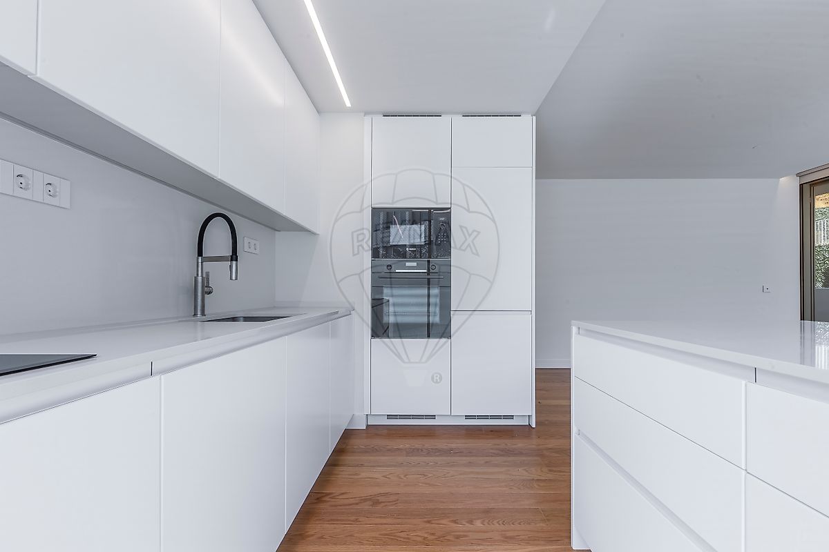 A cozinha encontra-se totalmente equipada com eletrodomésticos de alta gama e mobiliário de design contemporâneo.