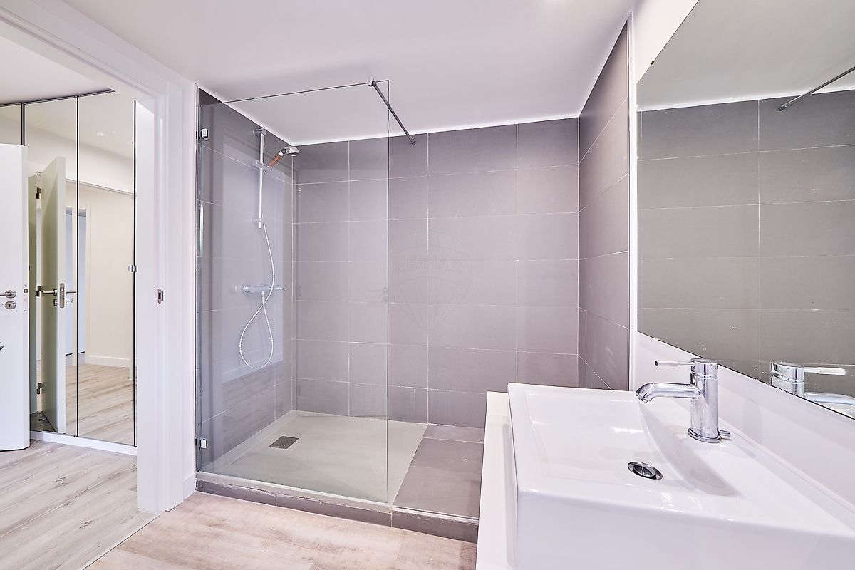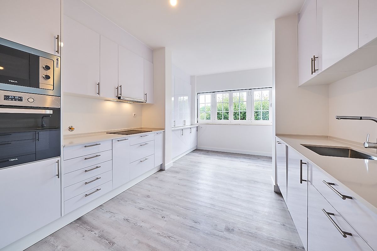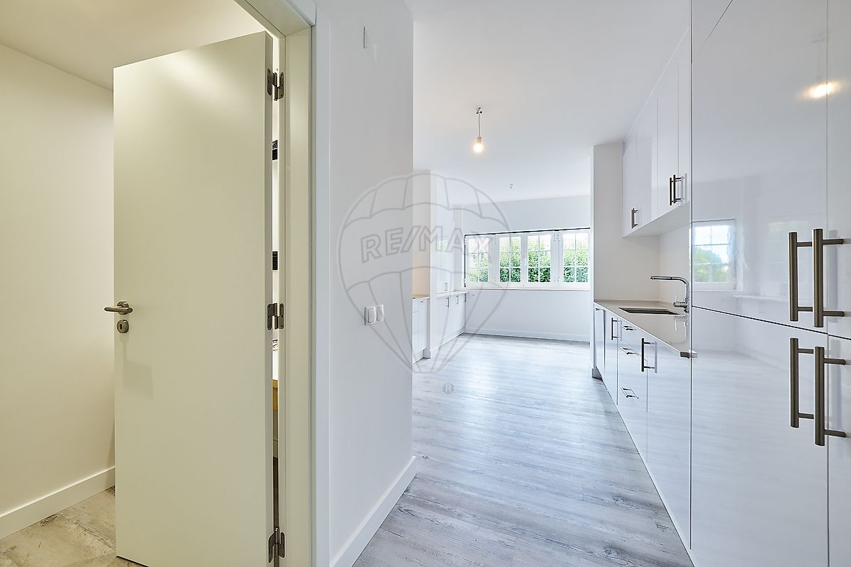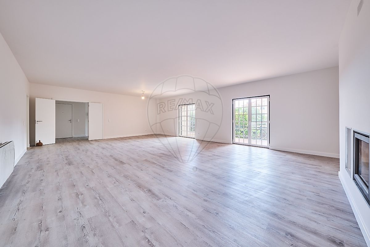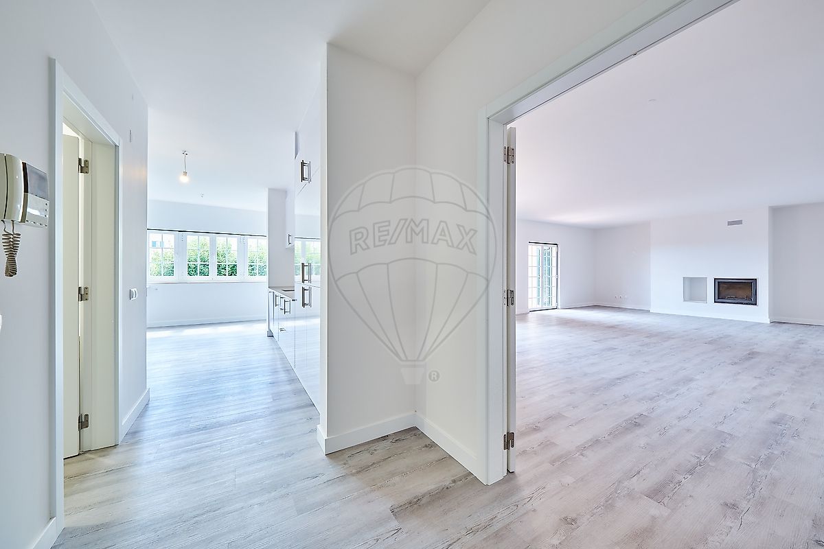 O apartamento tem 181 m2 de ABP, está completamente remodelado e tem 3 frentes, o que possibilita ter sol no apartamento durante todo o dia. A cozinha está equipada com todos os electrodomésticos e o apartamento tem 3 casas de banho, duas completas e um wc social. A sala tem 60 m2 e a suite tem 19 m2, excelentes áreas para um apartamento T3. O apartamento tem acesso direto da sala ao jardim e à piscina, o que é bastante cómodo.