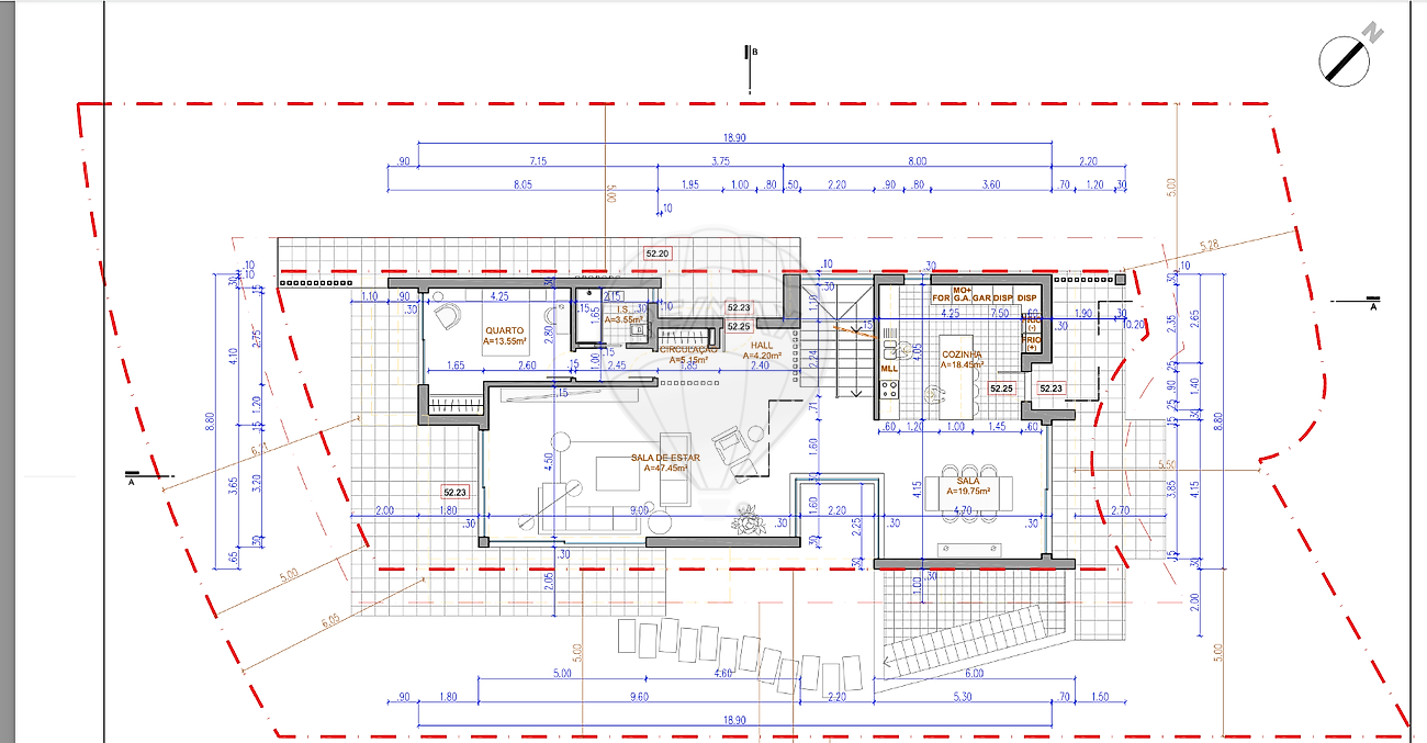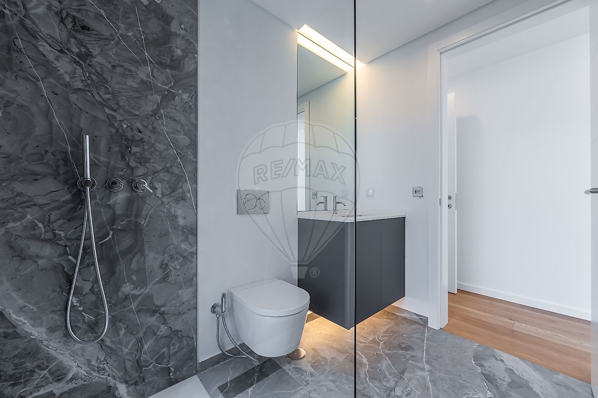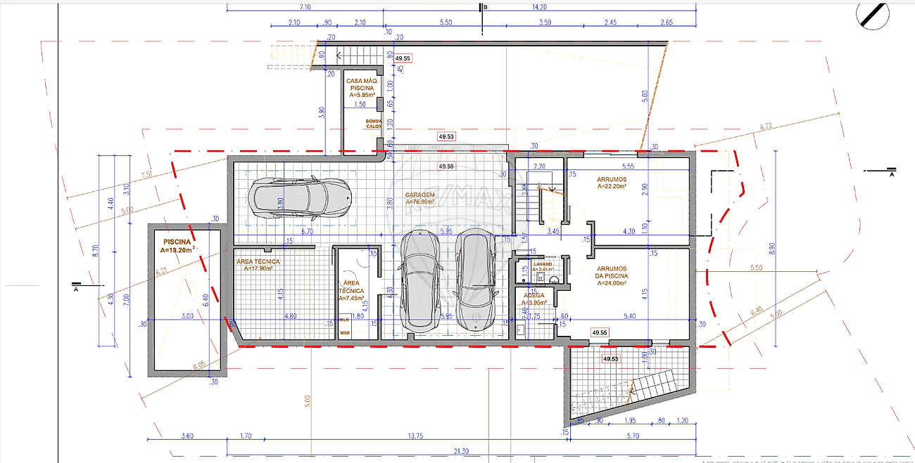 No piso -1 : Garagem para 4 carros com mais de 80m2, 2 divisões/quarto com mais de 22m2 cada, que podem ser utilizados como ginásio, sala de cinema, office, brinquedoteca, adega, casa de banho, zona de lavandaria e área técnica. Pré-instalação de carregamento para veiculos elétricos.
