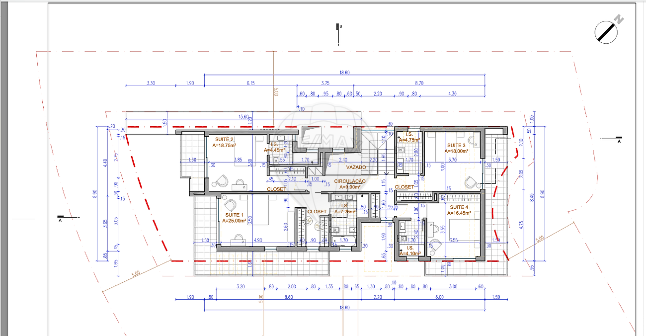 No piso 1 – 4 quartos em suíte com walking closet e varanda. A suíte master conta com mais de 35m2.