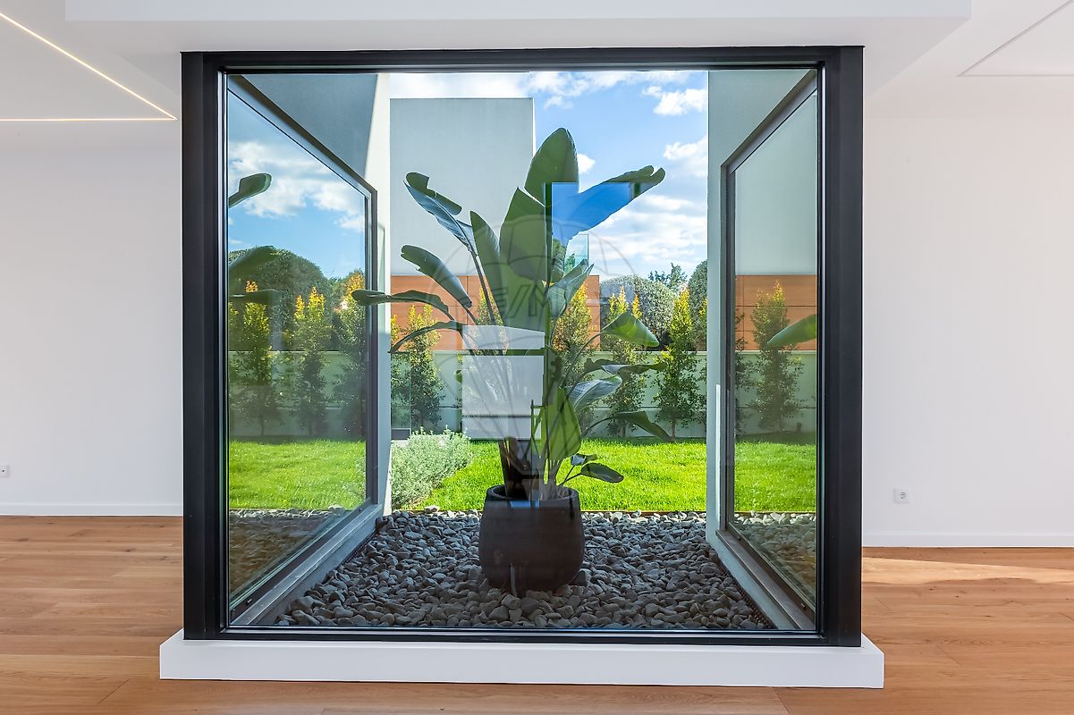 Os estores são elétricos e pré-instalação de blackouts o piso é em madeira de carvalho, jardim com sistema de rega automática, piscina com 25m2 aquecida, entre outros pequenos detalhes que fazem desta moradia uma peça ÚNICA.