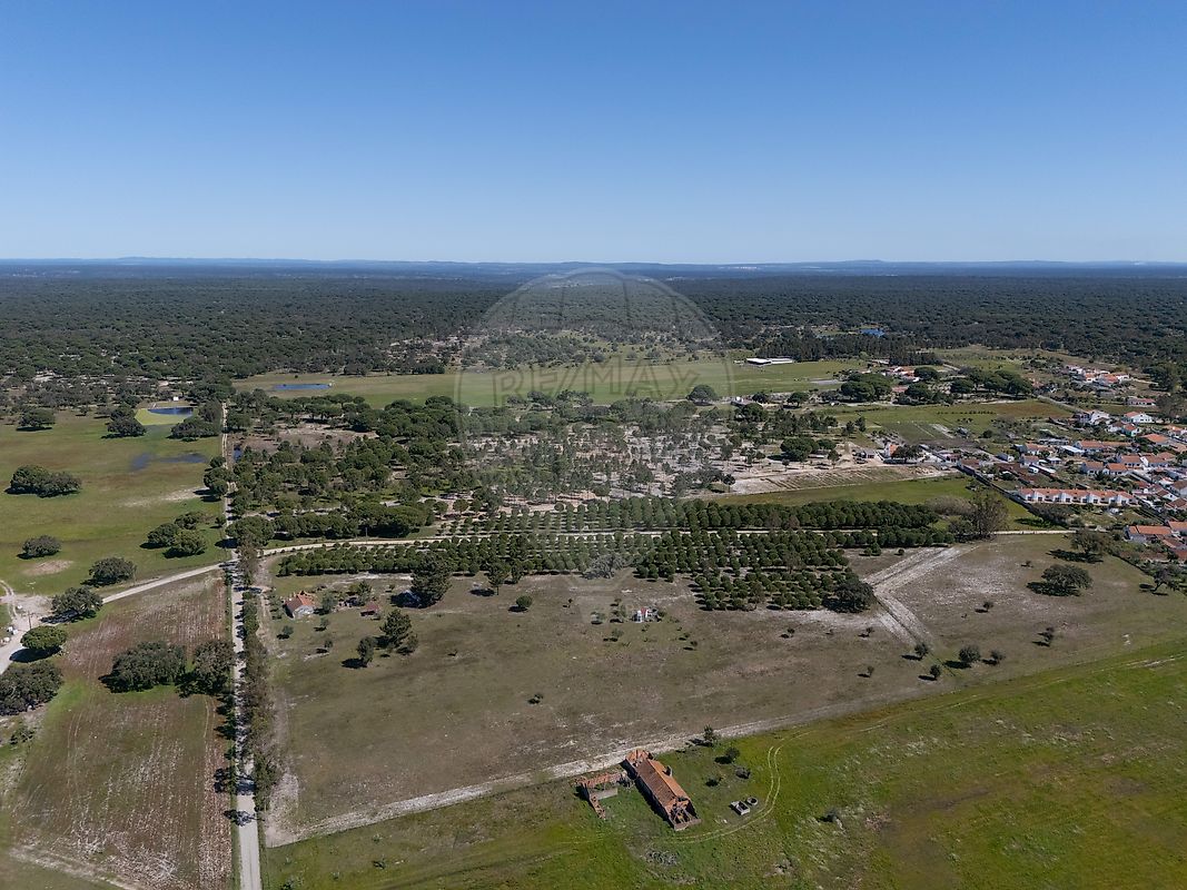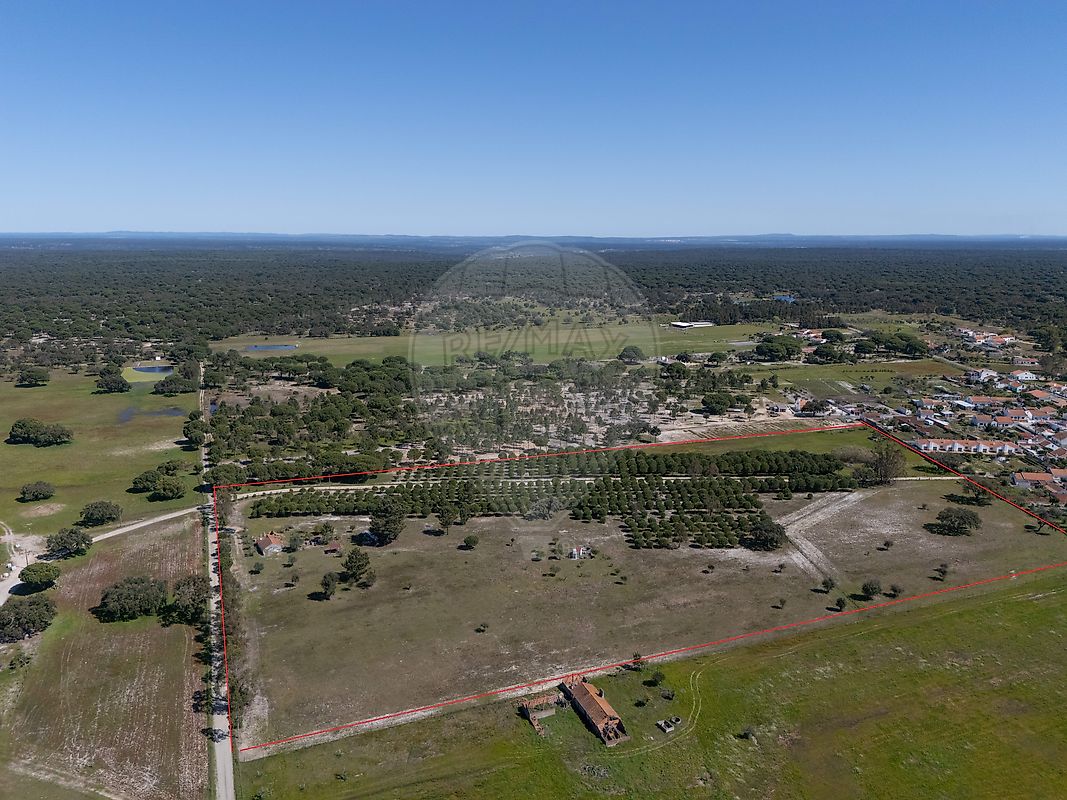 Located in the peaceful area of Água Derramada, just 8 minutes from the centre of Grândola, this expansive property offers 68,250 sqm of land within a highly desirable region, approximately 30 minutes from the beaches of Melides, Carvalhal and Comporta.